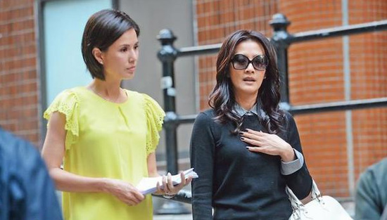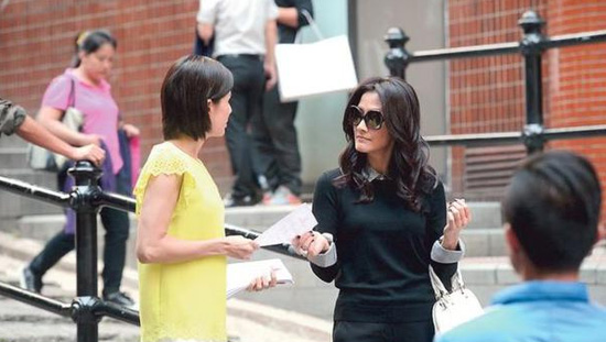 據香港媒體報道,26日中午李若彤、陳慧珊在中環石板街拍外景,陳慧珊一身黑色衫褲,戴著黑超,挽著白色手袋,充滿型格;李若彤則穿黃白色便服在街上派傳單,清純氣質宛有當年